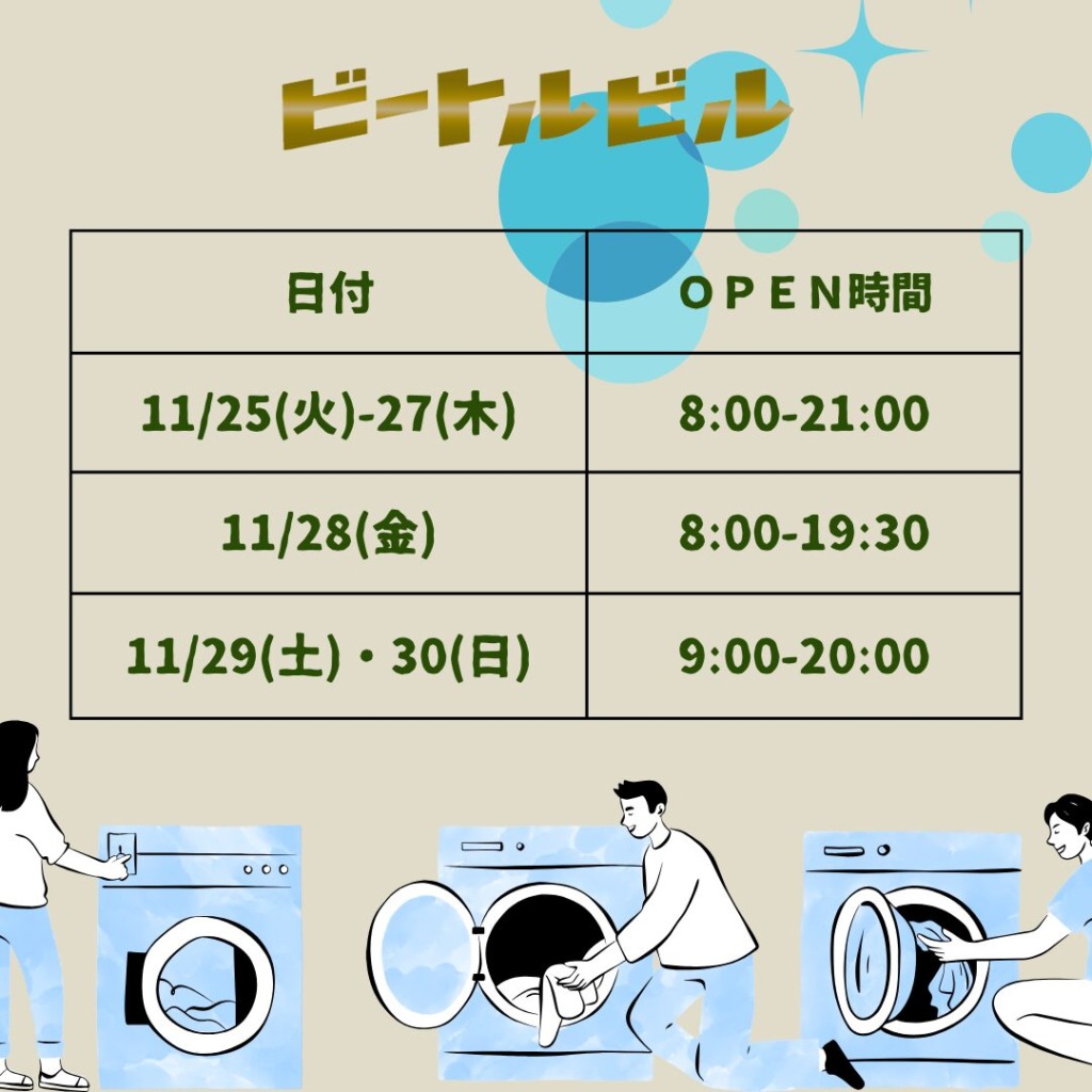 ☆11月25日 (火) 8:00~21:00(ドロップインは予約優先)☆11月26日 (水) 8:00~21:00 ( ドロップインは予約優先)☆11月27日 (木) 8:00~21:00 ( ドロッ…