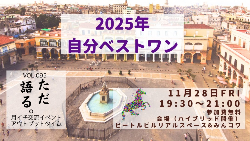 「2025年 自分ベストワン」―ただ語る 今年最後の「ただ語る。」小さいことから大きなことまで、2025年の自分褒めをしましょう。 11月28日(金)19時30分くらいからゆるりと始めます。 特に申し…